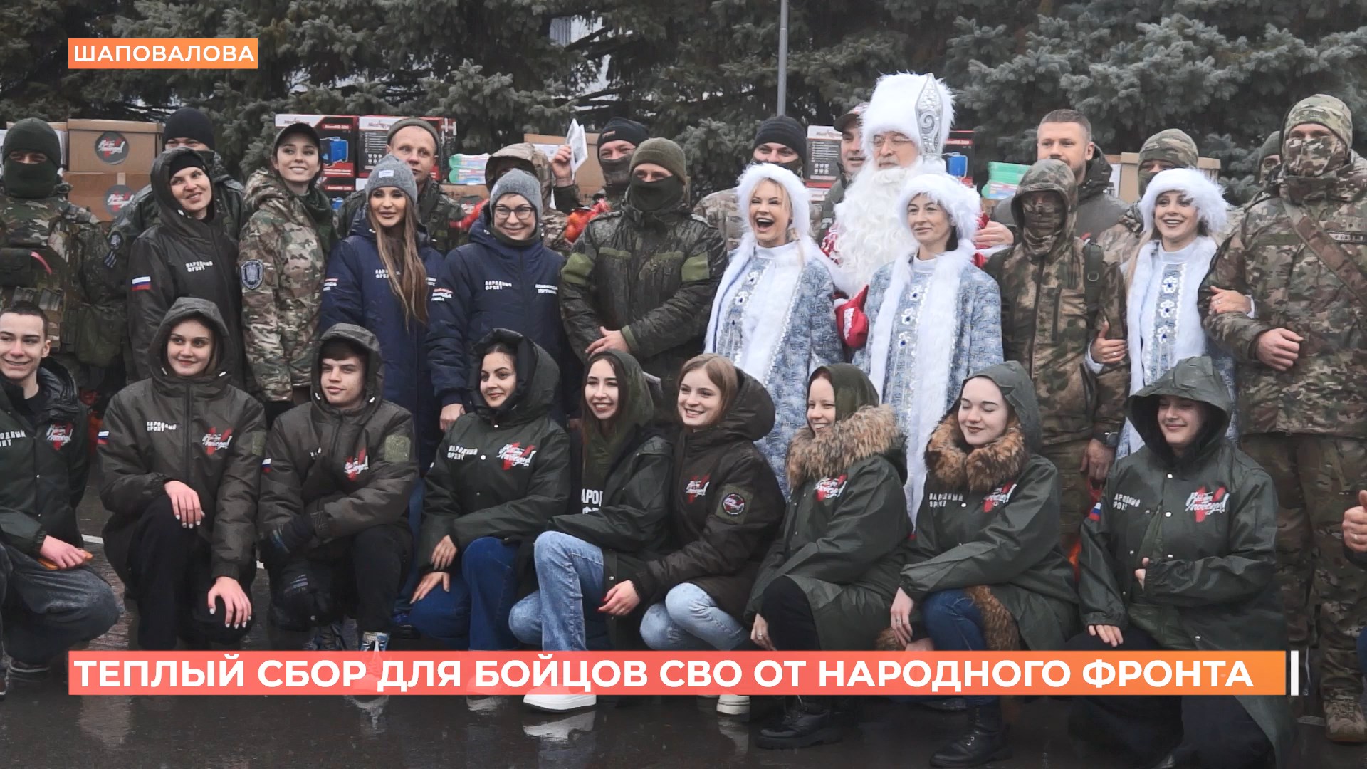 Зимнюю одежду и оборудование для обогрева передал в зону СВО Народный фронт. Всё, что в мороз и слякоть нужно на передовой — результат специального теплого сбора. Ну, а так как передача предновогодняя, узнаём знакомые лица под масками Деда Мороза и Снегурочек.